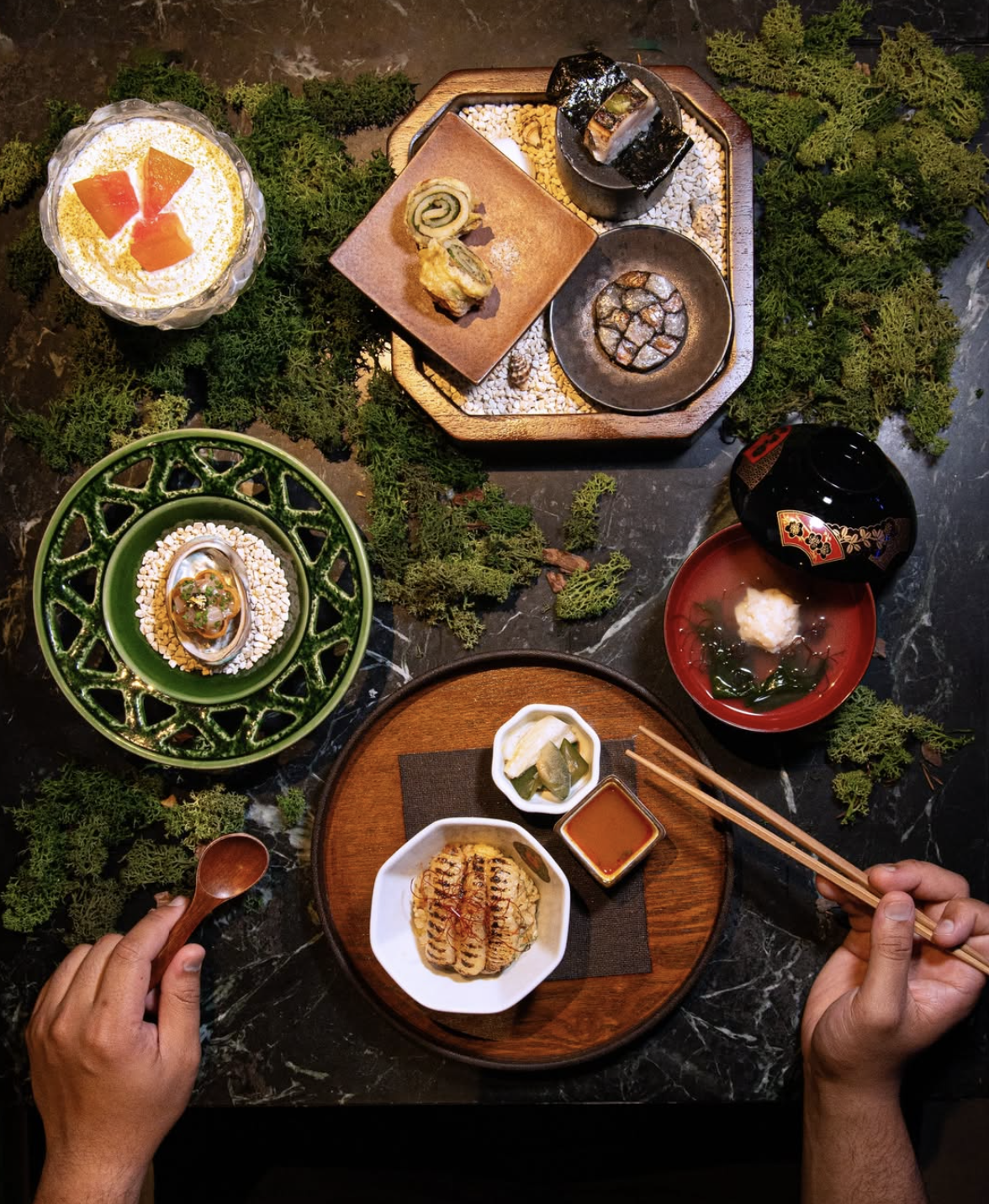 The experience is typically anchored by bold, flavour-forward plates, clean presentations, and a menu designed for sharing — encouraging discovery and conversation at the table.